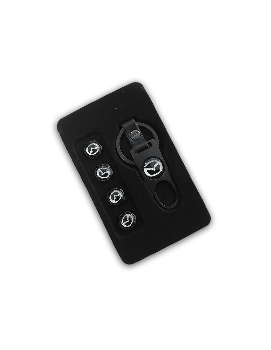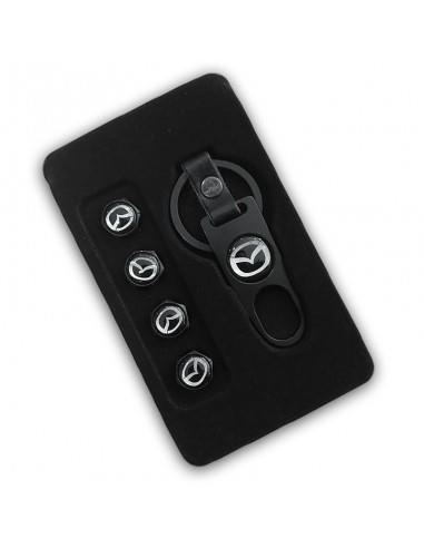 Ένα πολύ όμορφο και κομψό μεταλλικό μπρελόκ για τα κλειδιά του αυτοκινήτου σας με το σήμα της MAZDA σε σετ μαζί με 4 καπάκια βαλβίδων αέρος για τα λάστιχα. Σε μαύρο χρώμα.