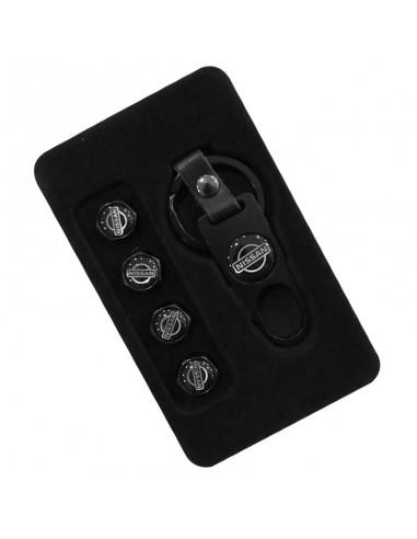 Ένα πολύ όμορφο και κομψό μεταλλικό μπρελόκ για τα κλειδιά του αυτοκινήτου σας με το σήμα της Nissan σε σετ μαζί με 4 καπάκια βαλβίδων αέρος για τα λάστιχα. Σε μαύρο χρώμα.