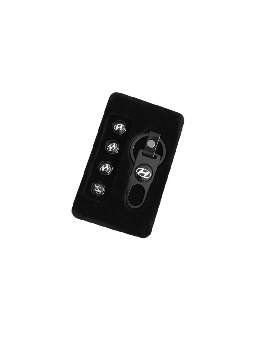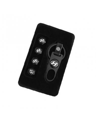 Ένα πολύ όμορφο και κομψό μεταλλικό μπρελόκ για τα κλειδιά του αυτοκινήτου σας με το σήμα της HYUNDAI σε σετ μαζί με 4 καπάκια βαλβίδων αέρος για τα λάστιχα. Σε μαύρο χρώμα.
