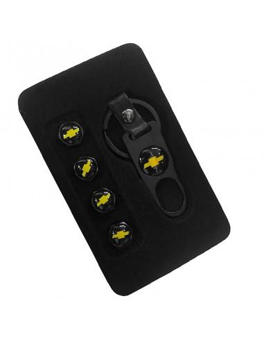 Ένα πολύ όμορφο και κομψό μεταλλικό μπρελόκ για τα κλειδιά του αυτοκινήτου σας με το σήμα της CHEVROLET σε σετ μαζί με 4 καπάκια βαλβίδων αέρος για τα λάστιχα. Σε μαύρο χρώμα.