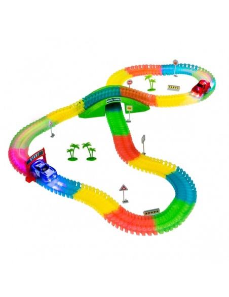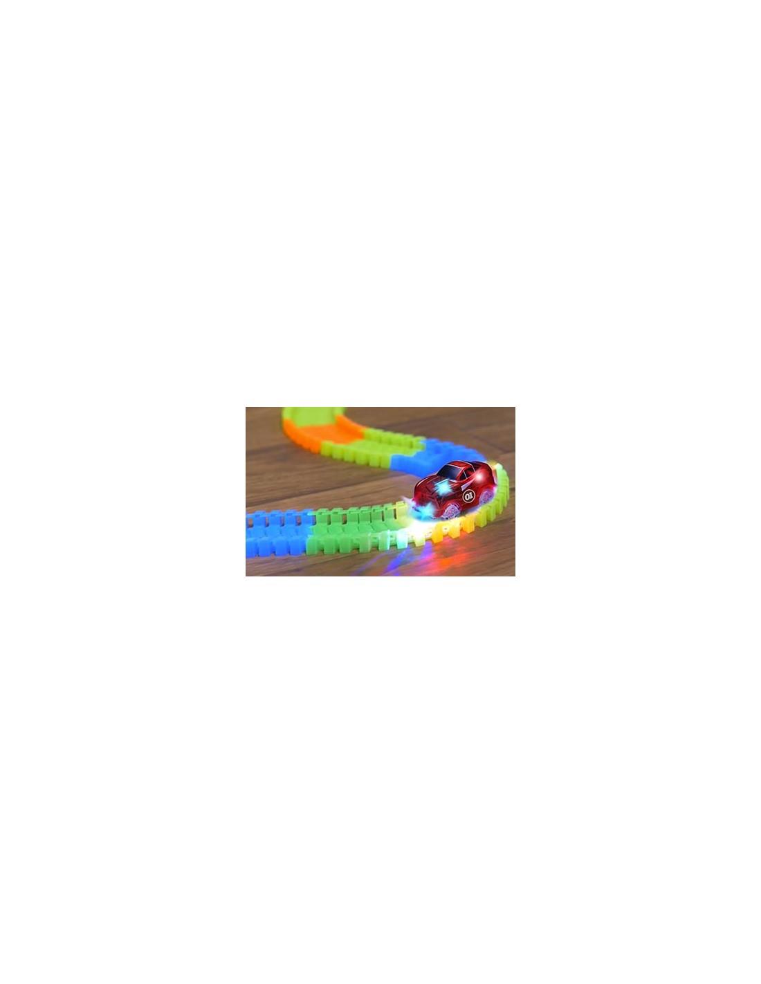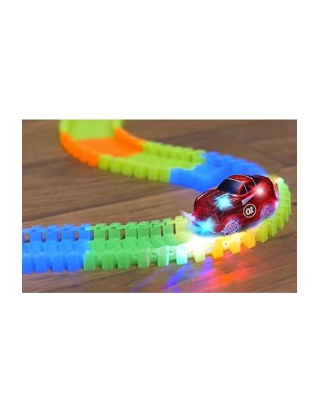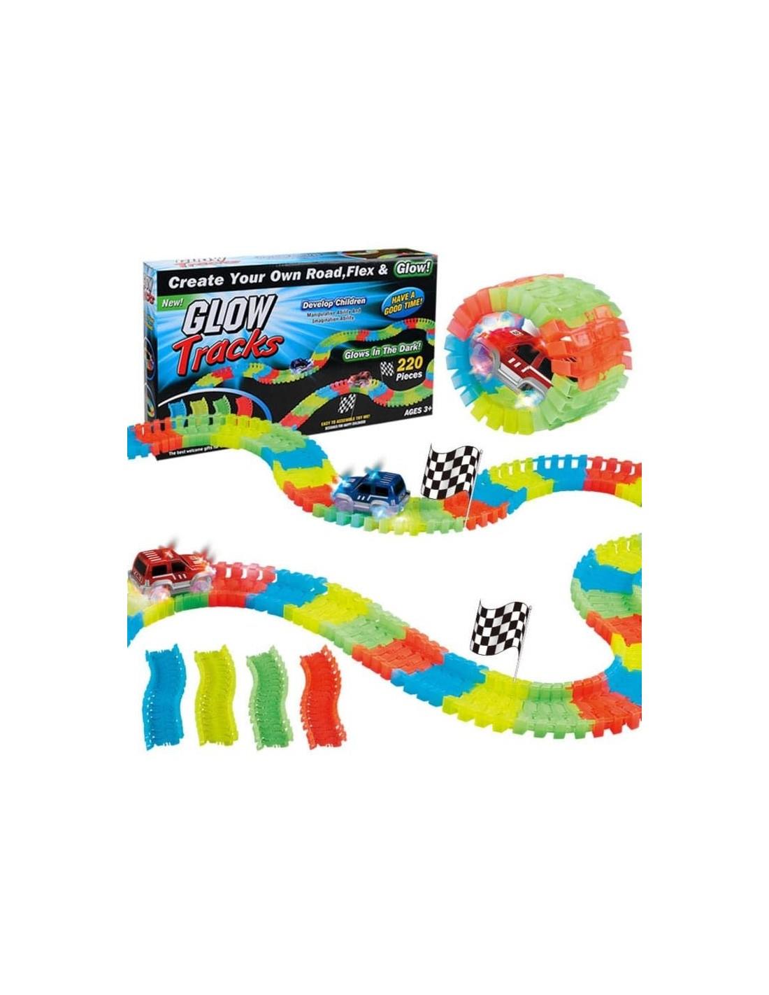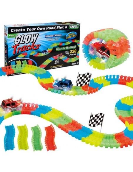 Χάρη στα ειδικά κομμάτια κούρσας που ενώνονται πολύ εύκολα, μπορείτε να τα λυγίζετε και να σχηματίζετε εσείς τις δικές σας διαδρομές αλλά και χάρη στο υλικό από το οποίο είναι φτιαγμένο λάμπει στο σκοτάδι!