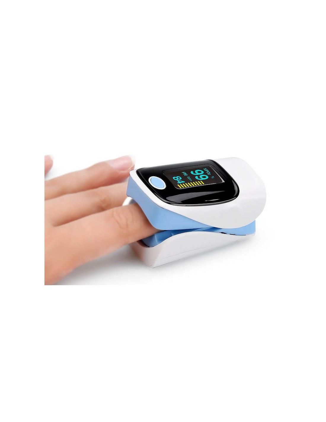 - Το οξύμετρο τοποθετείται στην άκρη του δαχτύλου σας, ενώ στην ευανάγνωστη OLED οθόνη του μπορείτε να ελέγξετε είτε τους καρδιακούς σας παλμούς αλλά και τα επίπεδα κορεσμού του οξυγόνου στο αίμα, ενώ σας ενημερώνει με μια ηχητική ειδοποίηση όταν ολοκληρωθεί η μέτρηση.