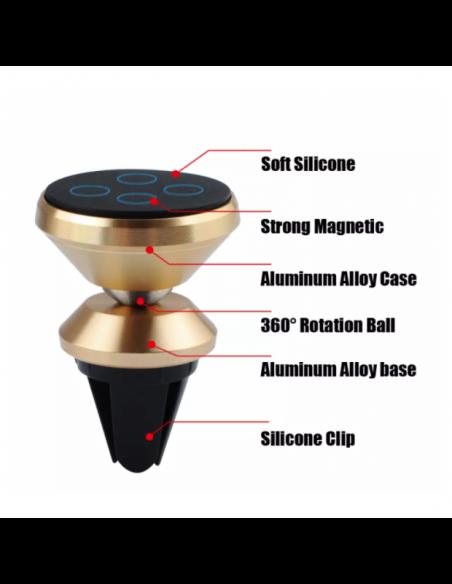 Η βάση περιστρέφεται 360° για να σας δώσει την καλύτερη οπτική γωνία. Τοποθετείται εύκολα στις γρίλιες του αεραγωγού του αυτοκινήτου σας. Ιδανικό για μεγάλα ταξίδια, για να λαμβάνετε πληροφορίες από GPS για τον δρόμο, ακόμα και για παρακολούθηση ταινιών από τους υπόλοιπους επιβάτες! Είναι συμβατό με smartphones και GPS από 3,5 έως 6″ ίντσες.