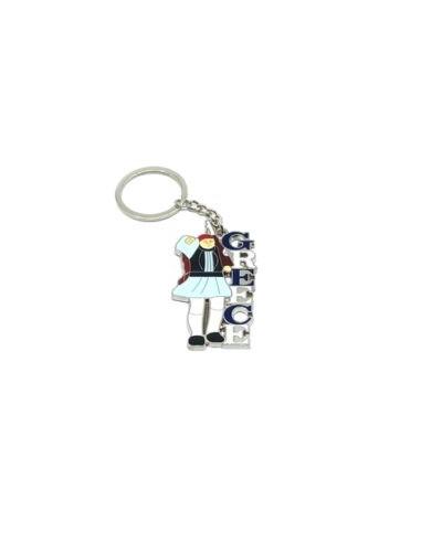 Πολύχρωμο μεταλλικό μπρελόκ Greece με Εύζωνα σε βηματισμό, ιδανικό Ελληνικό σουβενίρ για εσάς και τους αγαπημένους σας.