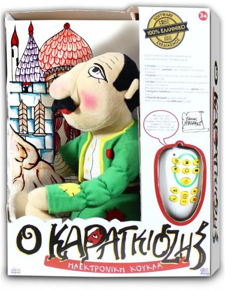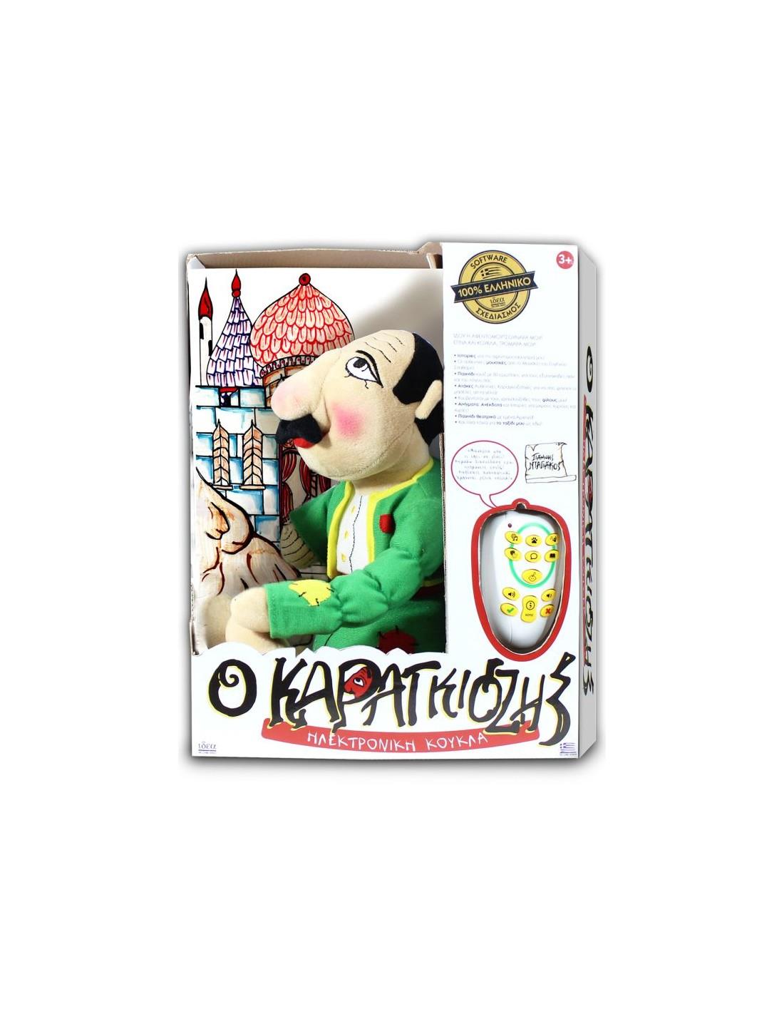 Καραγκιόζης."Εεεε ρε γλέντια! Θα φάμε, θα πιούμε και νηστικοί θα κοιμηθούμε!" Μηχανική λοούτρινη κούκλα ΚΑΡΑΓΚΙΟΖΗΣ που μιλάει και κινείται!Με τη φωνή και την υπογραφή του καραγκιοζοπαίκτη Γιάννη Νταγιάκου.Περιλαμβάνει τηλεχειριστήριο και τα αυθεντικά μουσικά κομμάτια που χρησιμοποιούσε στις παραστάσεις του ο Δάσκαλος Ευγένιος Σπαθάρης.ΠΕΡΙΕΧΟΜΕΝΑ:
