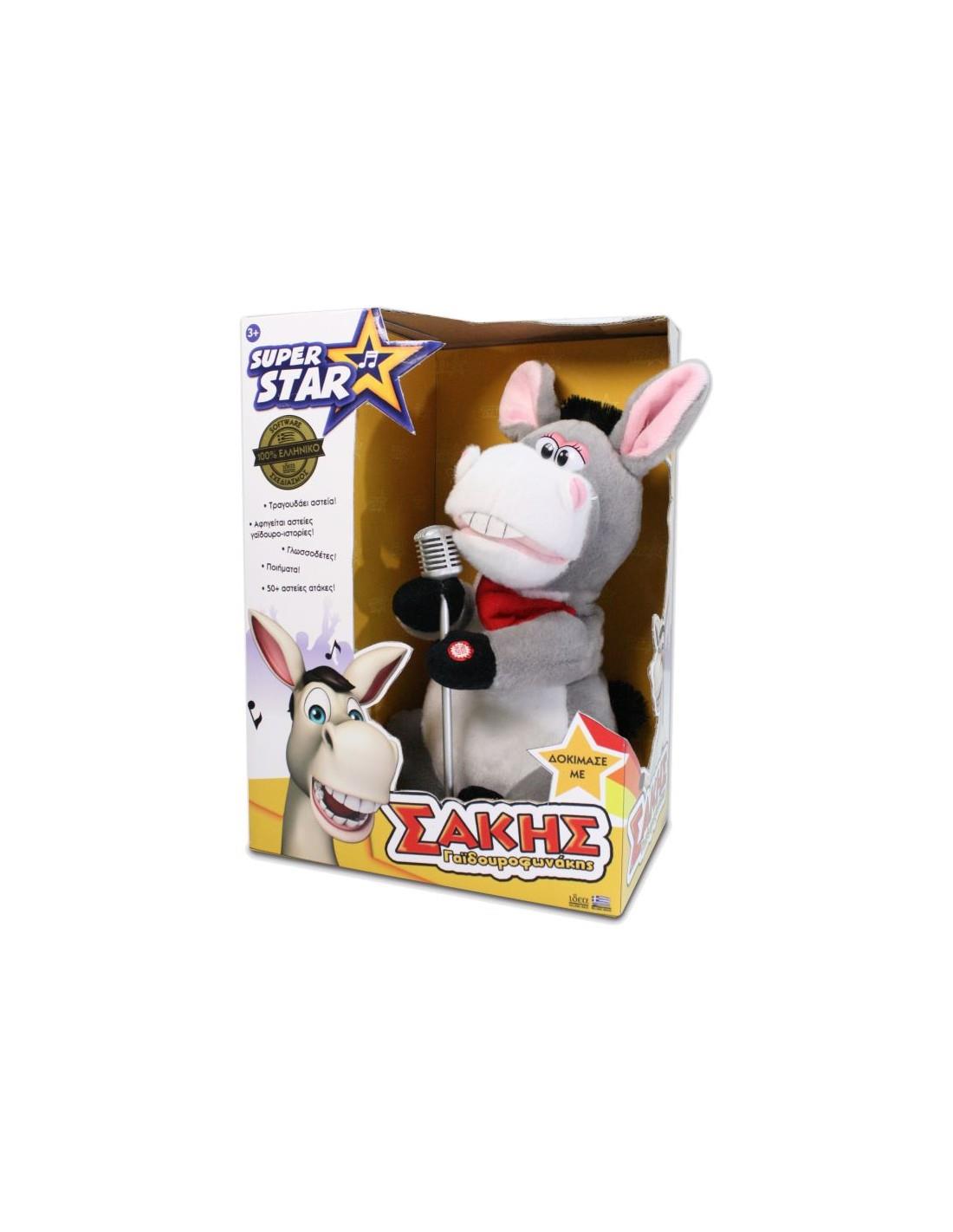 Ιδέα Super Stars-Σάκης Γαϊδουροφωνάκης .Ο Σάκης Γαϊδουροφωνάκης είναι πολύ μεγάλος καλλιτέχνης και θέλει να γίνει σταρ! Αγαπάει την Σάρρα τη Γαϊδάρα, η οποία όμως θέλει τον Άρη Πουλάρη.Μηχανικό ηλεκτρονικό ρομπότ με ρεαλιστική κίνηση στο στόμα και την αστεία φωνή του Σάκη Γαϊδουροφωνάκη.Με 50+ ελληνικές φράσεις.Για να τα ακούσετε, πατήστε τα κουμπιά στα χέρια του προϊόντος.