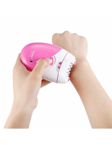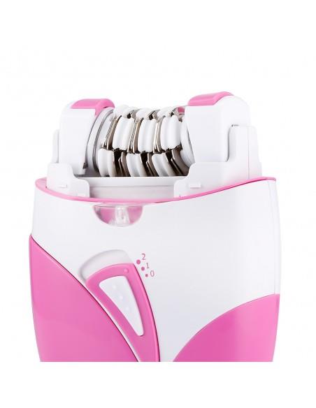 Διαθέτει 2 ταχύτητες, φως και 45 λεπτά αυτονομία για να κάνει την αποτρίχωση μια άνετη και εύκολη διαδικασία. Η κεφαλή είναι εξοπλισμένη με ενσωματωμένο κοντό λαστιχένιο χτενάκι για να καθαρίζει το δέρμα από τις τρίχες που βγάζετε και να ανασηκώνει όσες απέμειναν.
