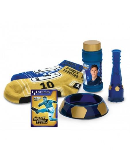 1. Ρίξε το υγρό στο ειδικό πιατάκι 2. φόρα τις κάλτσες Messi 3. βούτα τον φυσητήρα στο υγρό 4. Φύσα στο στόμιο 5. κλότσα όλες τις φούσκες πριν αγγίξουν το έδαφος! Περιλαμβάνει: υγρό διάλυμα για φούσκες, 2 κάλτες Messi, ειδικό πιατάκι, φυσητήρα, αυτόγραφο του Leo Messi!