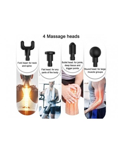 Αυτό το προσωπικό πιστόλι χειρός σας βοηθάει να ξεπεράσετε τον πόνο των μυών, να απαλλαγείτε από την κούραση του σώματος, να καταπολεμάτε την ακαμψία και τους σπασμούς . Απλά απολαύστε το βαθύ μασάζ ιστού και χαλαρώστε στο σπίτι, στο γραφείο σας ή σε ένα μακρύ ταξίδι!