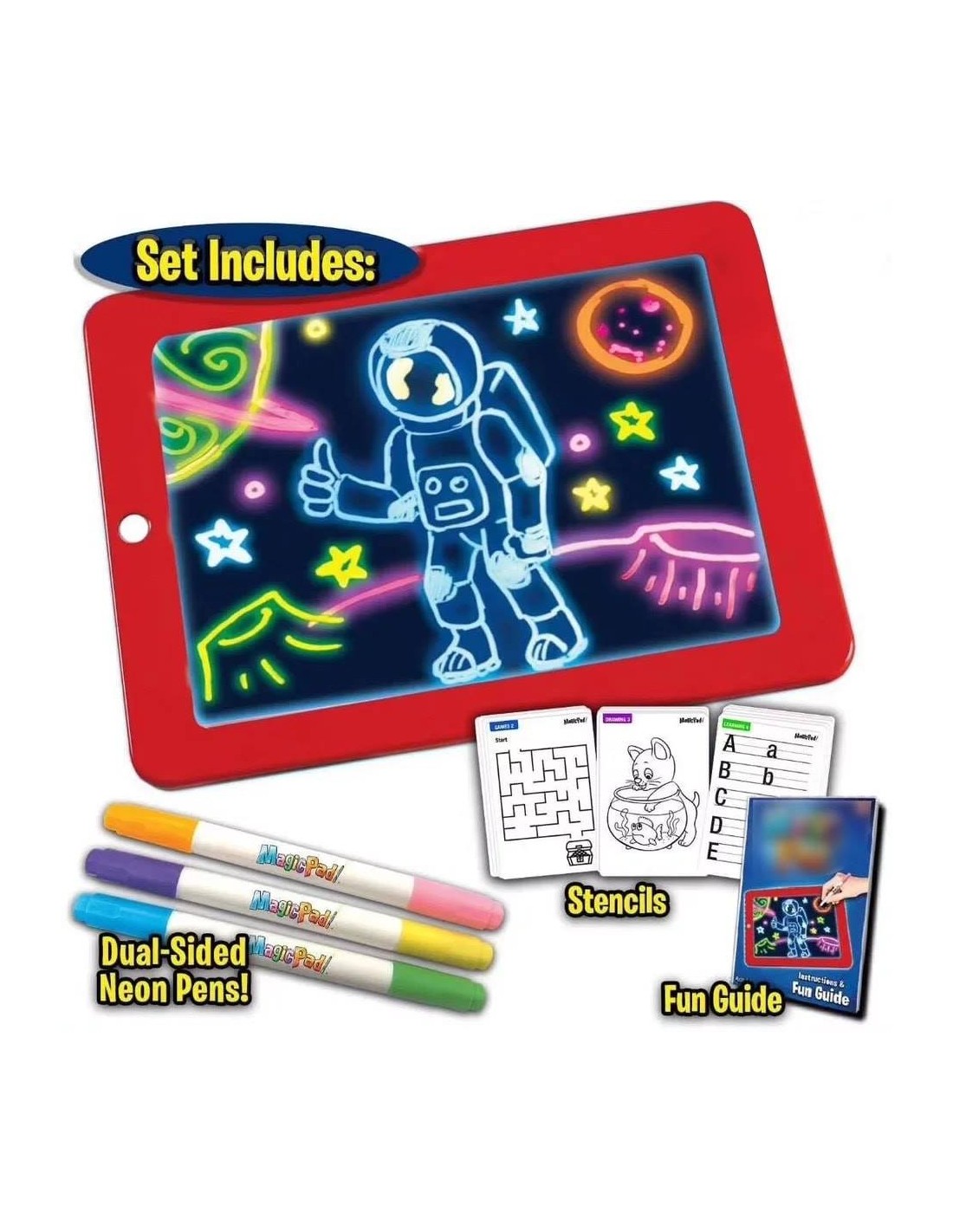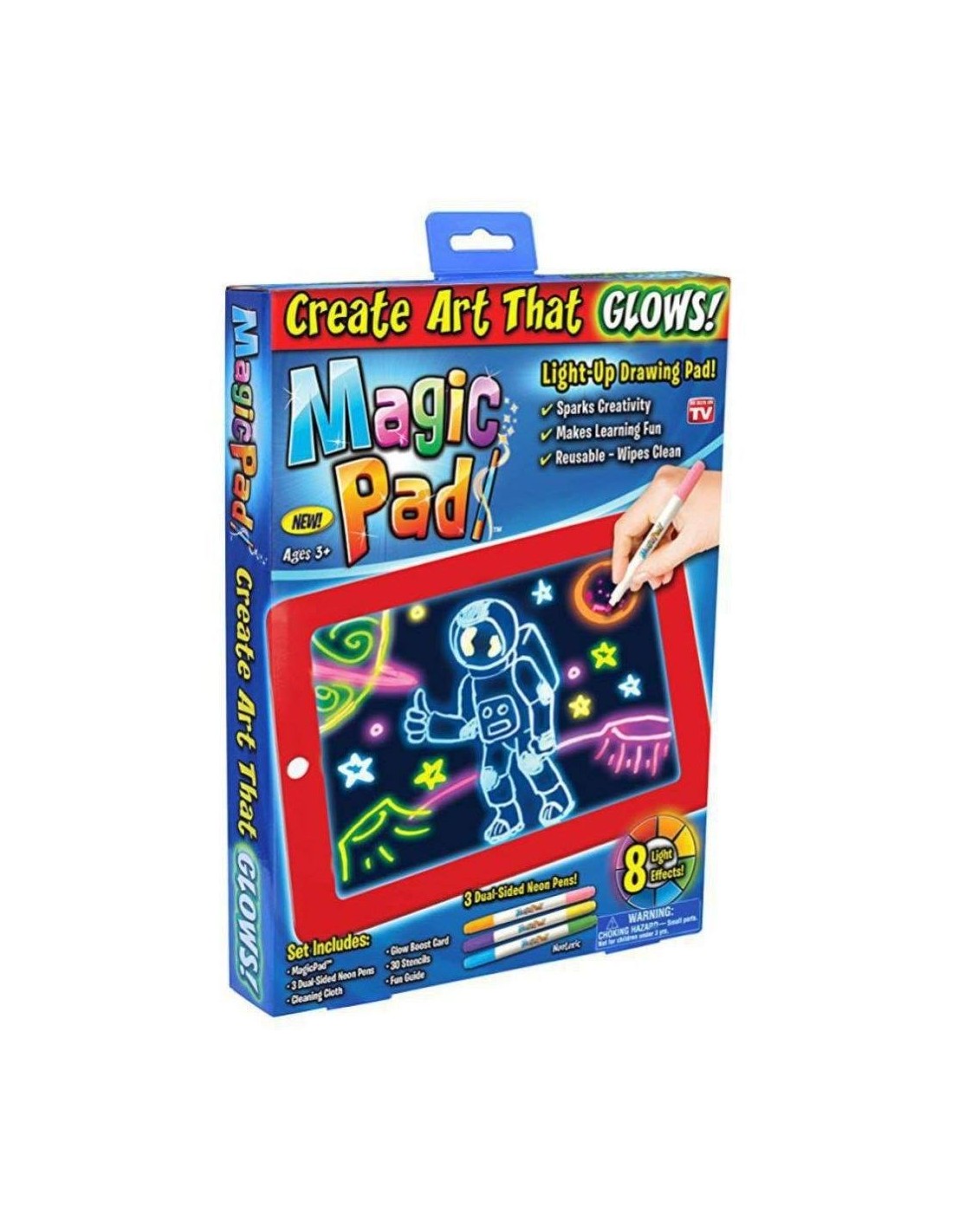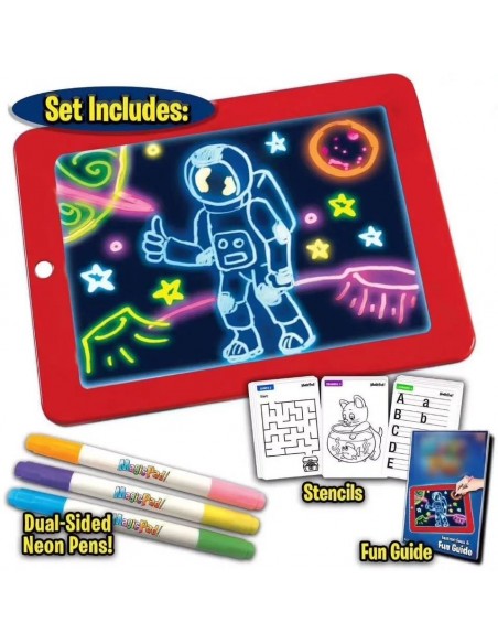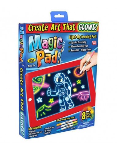 Ο μαγικός πίνακας Magic Pad, διαθέτει λευκή διάφανη επιφάνεια, η οποία φωτίζεται με LED φως όταν σχεδιάσετε πάνω της. Επιπρόσθετα, το παιδί μπορεί να αλλάξει το χρώμα του φωτός ή να το κάνει να αναβοσβήνει με το πάτημα ενός μόνο κουμπιού. Διαθέτει οχτώ διαφορετικά εφέ φωτισμού και καθαρίζεται εύκολα με το ειδικό πανάκι.