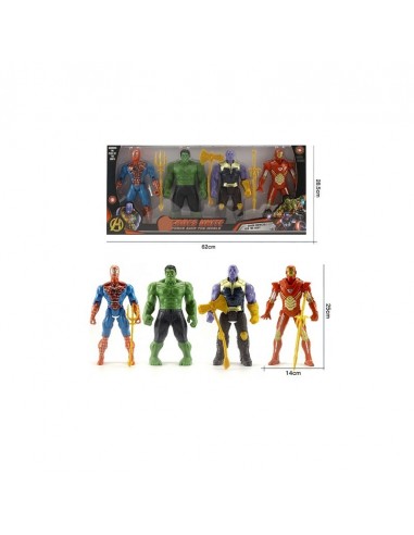 Σετ 4 φιγούρες υπερηρώων για να ανταλλάζεις και να παίζεις με τους φίλους σου. Οι διαστάσεις της συσκευασίας είναι: Υ. 28.5cm, Π. 62cm και της κάθε φιγούρας Υ. 25cm, Π. 14cm.