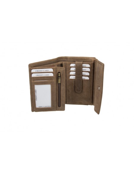 - Γυναικείο πορτοφόλι με διπλό εξωτερικά καπάκια με διαστάσεις L 14 x H 10 cm