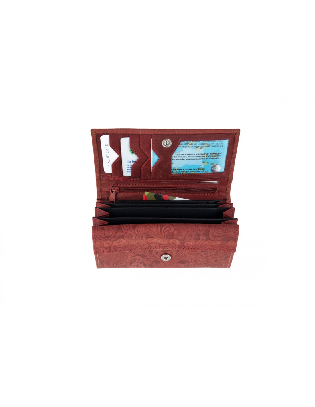 - 1 Επιπλέον εξωτερική θέση μεγέθους Ελληνικής ταυτότητας στο πίσω μέρος του πορτοφολιού