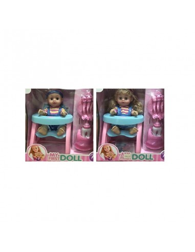 Παιδική κούκλα με καθισματάκι φαγητού.