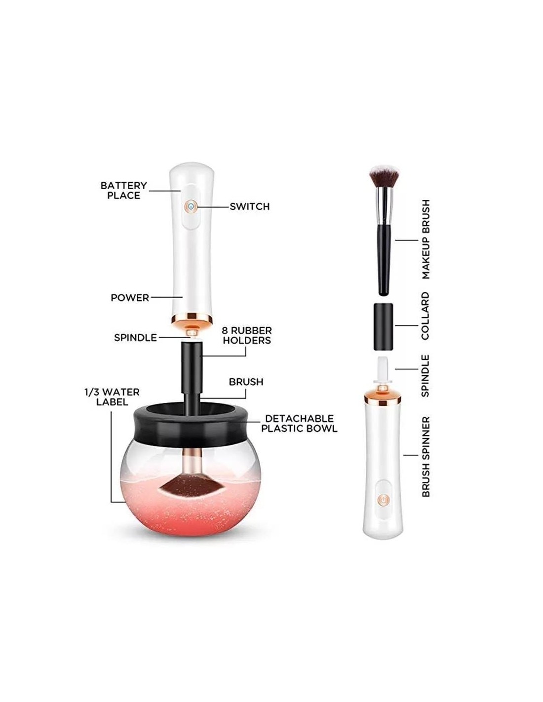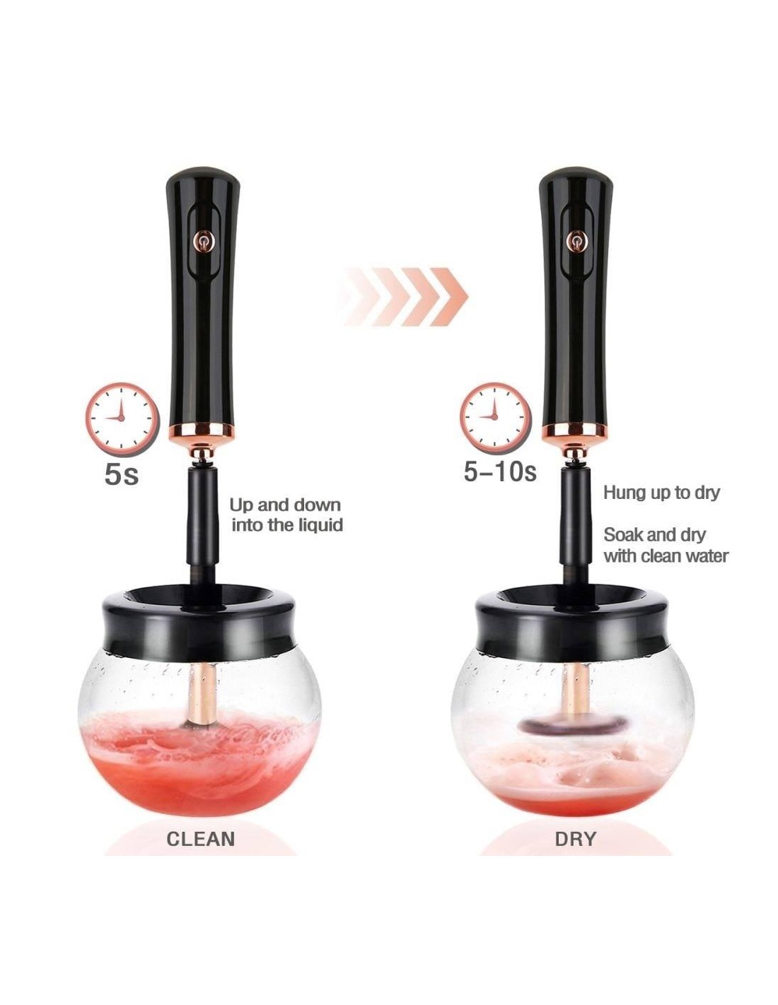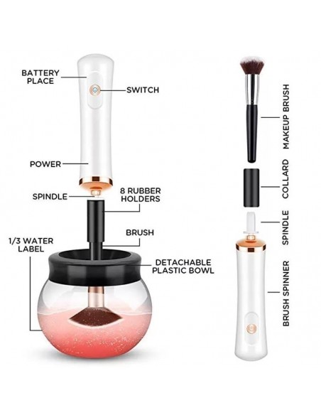 Η Ηλεκτρική Συσκευή Καθαρισμού Πινέλων Μακιγιάζ διαθέτει μια περιστρεφόμενη λειτουργία η οποία καθαρίζει τα πινέλα μακιγιάζ μέσα σε λίγα μόλις δευτερόλεπτα.