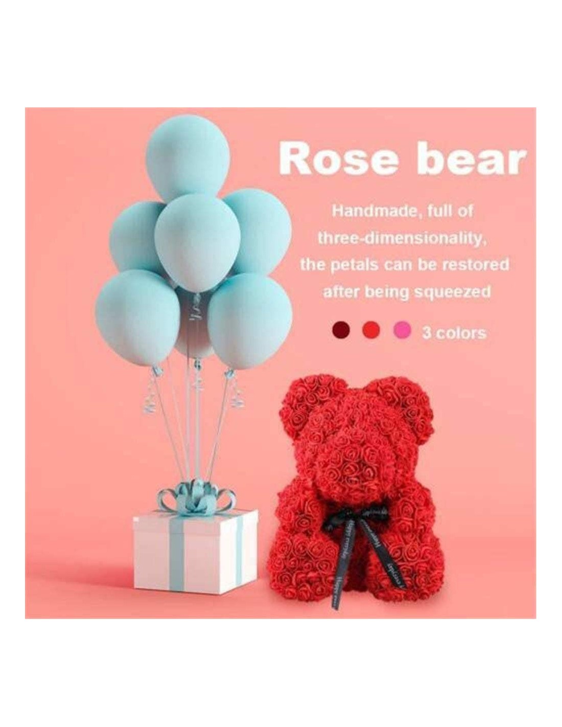 Ένα υπέροχο χειροποίητο αρκουδάκι από latex τεχνητά λουλούδια που διαρκούν για πάντα, το Rose Bear είναι τοποθετημένο μέσα σε κλειστό διάφανο κουτί!