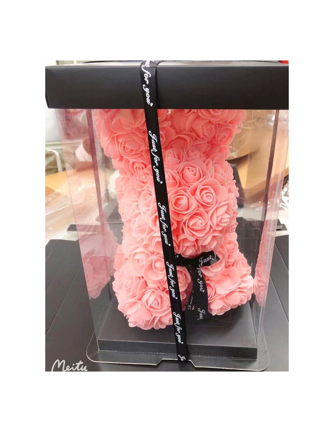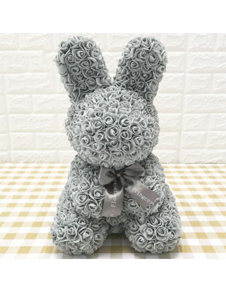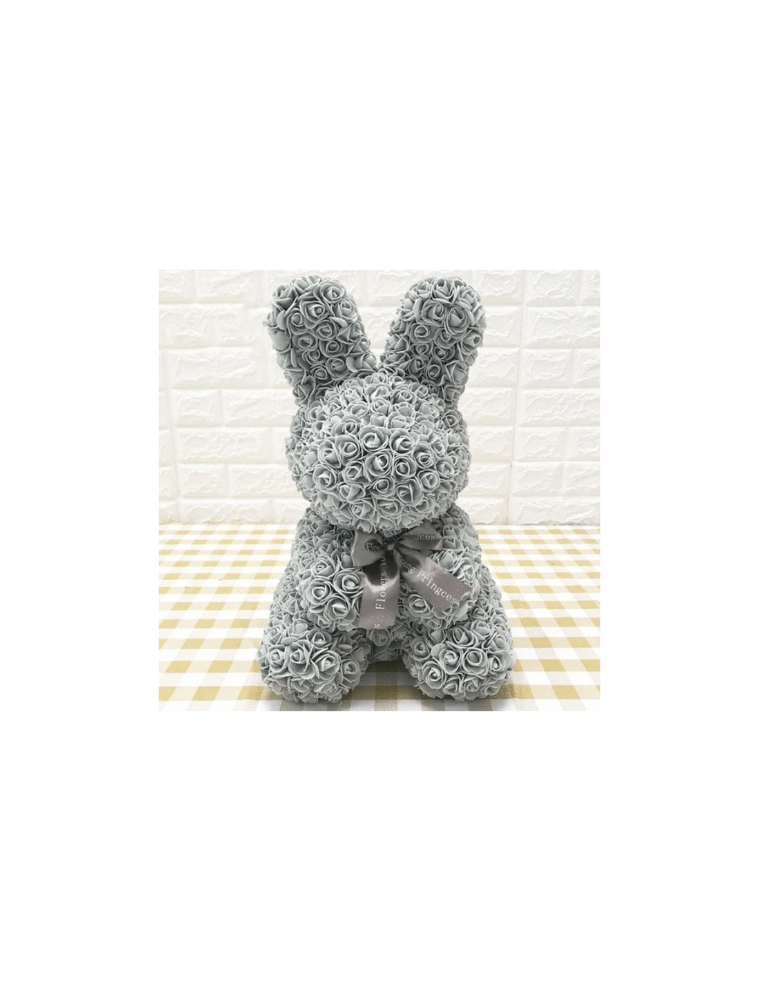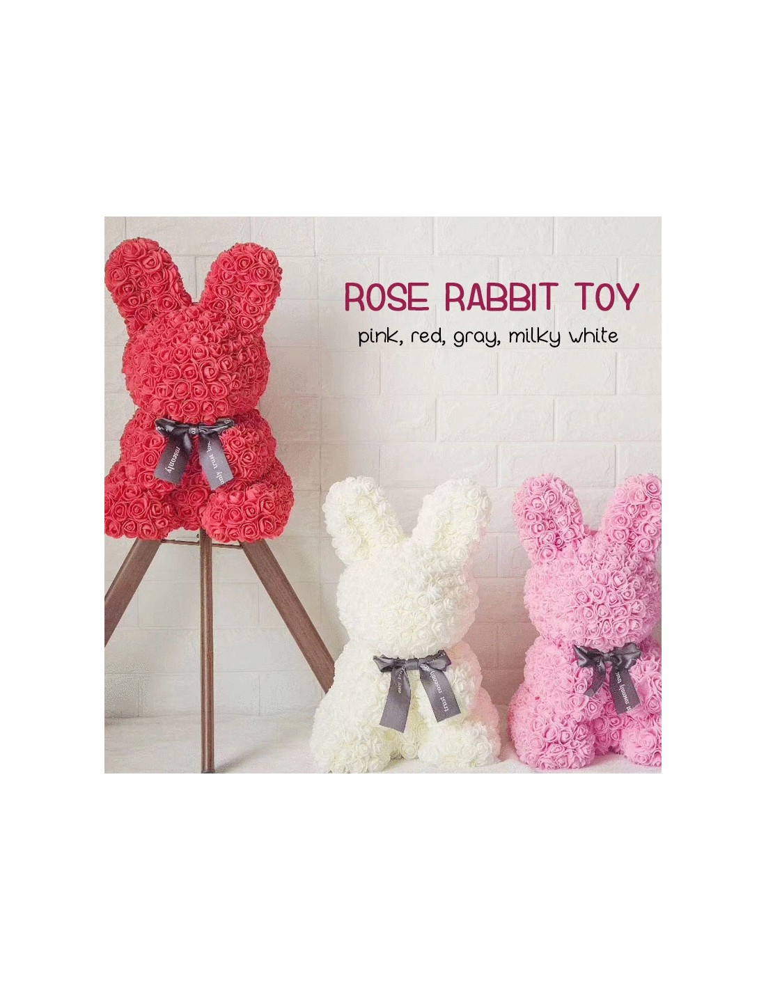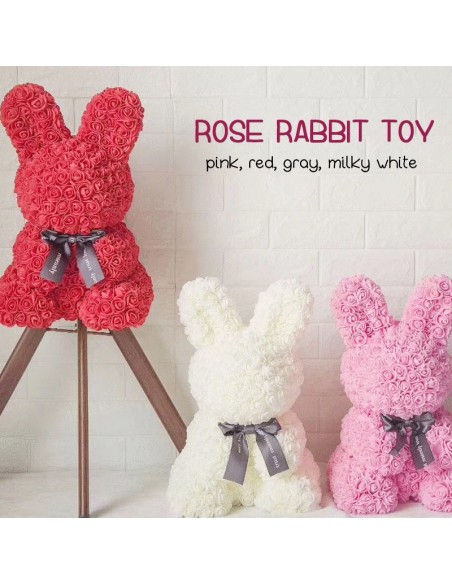 Ένα υπέροχο χειροποίητο λαγουδακι από latex τεχνητά λουλούδια που διαρκούν για πάντα, το Rose Rabbit είναι τοποθετημένο μέσα σε κλειστό διάφανο κουτί!