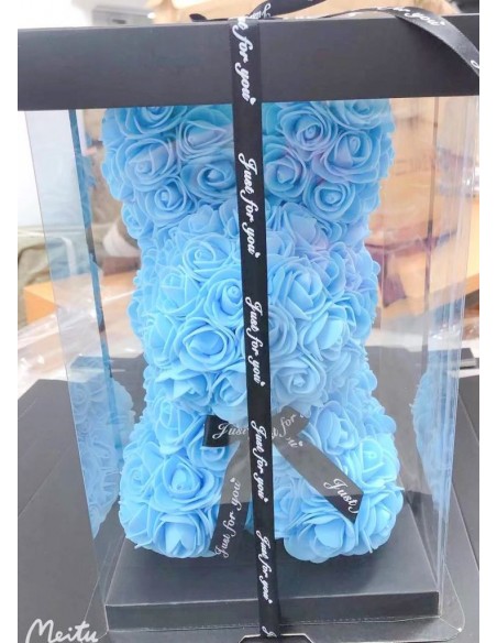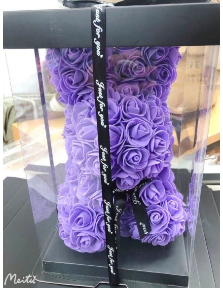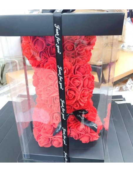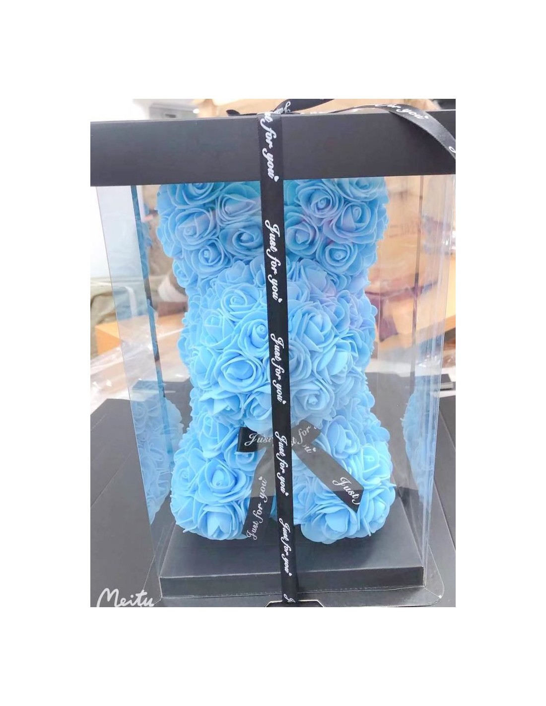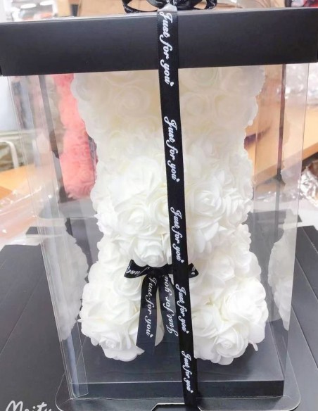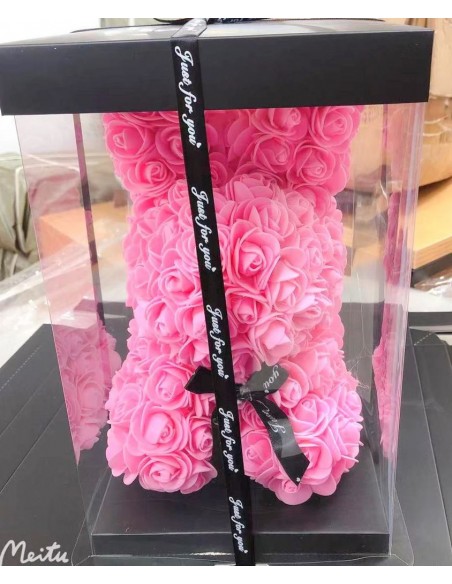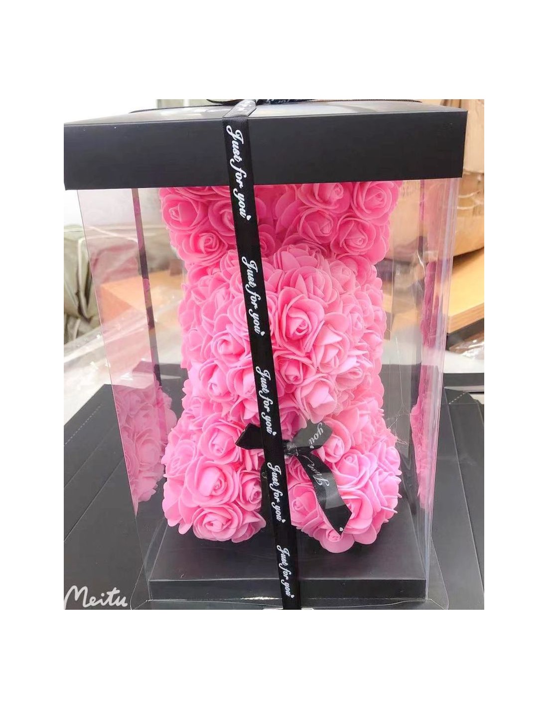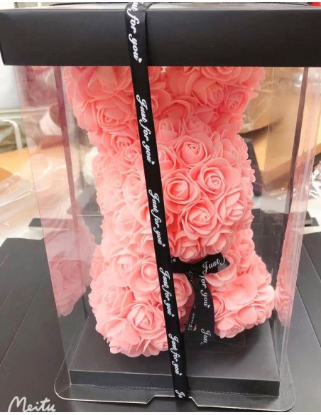 Ένα υπέροχο χειροποίητο λαγουδακι από latex τεχνητά λουλούδια που διαρκούν για πάντα, το Rose Rabbit είναι τοποθετημένο μέσα σε κλειστό διάφανο κουτί!