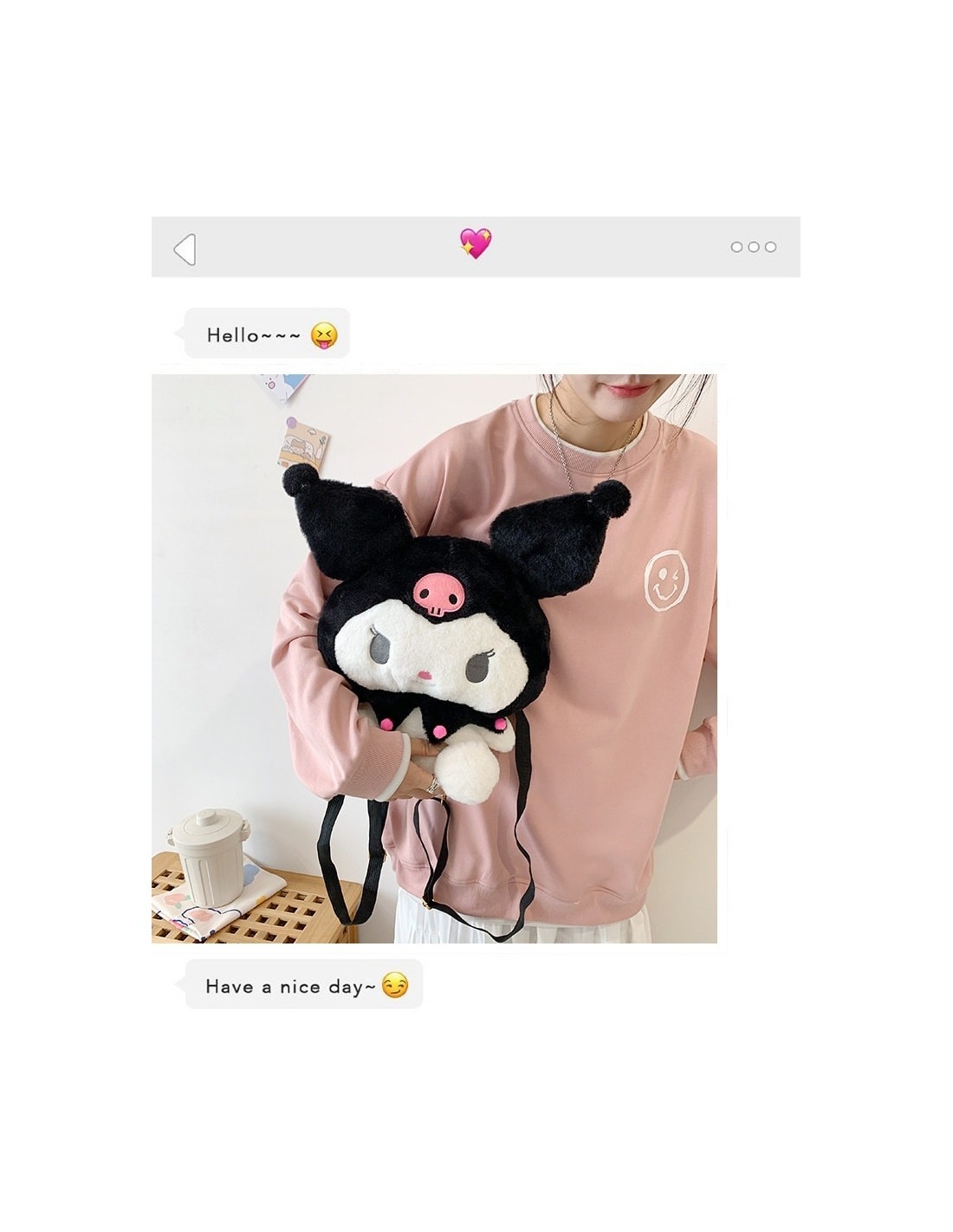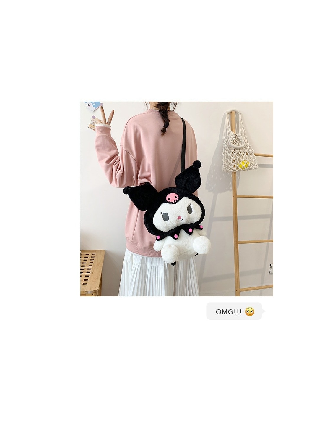 ΛΟΥΤΡΙΝΟ KUROMI ΚΑΙ ΤΣΑΝΤΑ ΠΛΑΤΗΣ BACKPACK- ΧΙΑΣΤΙ 3 ΣΕ 1 50CM (OEM)