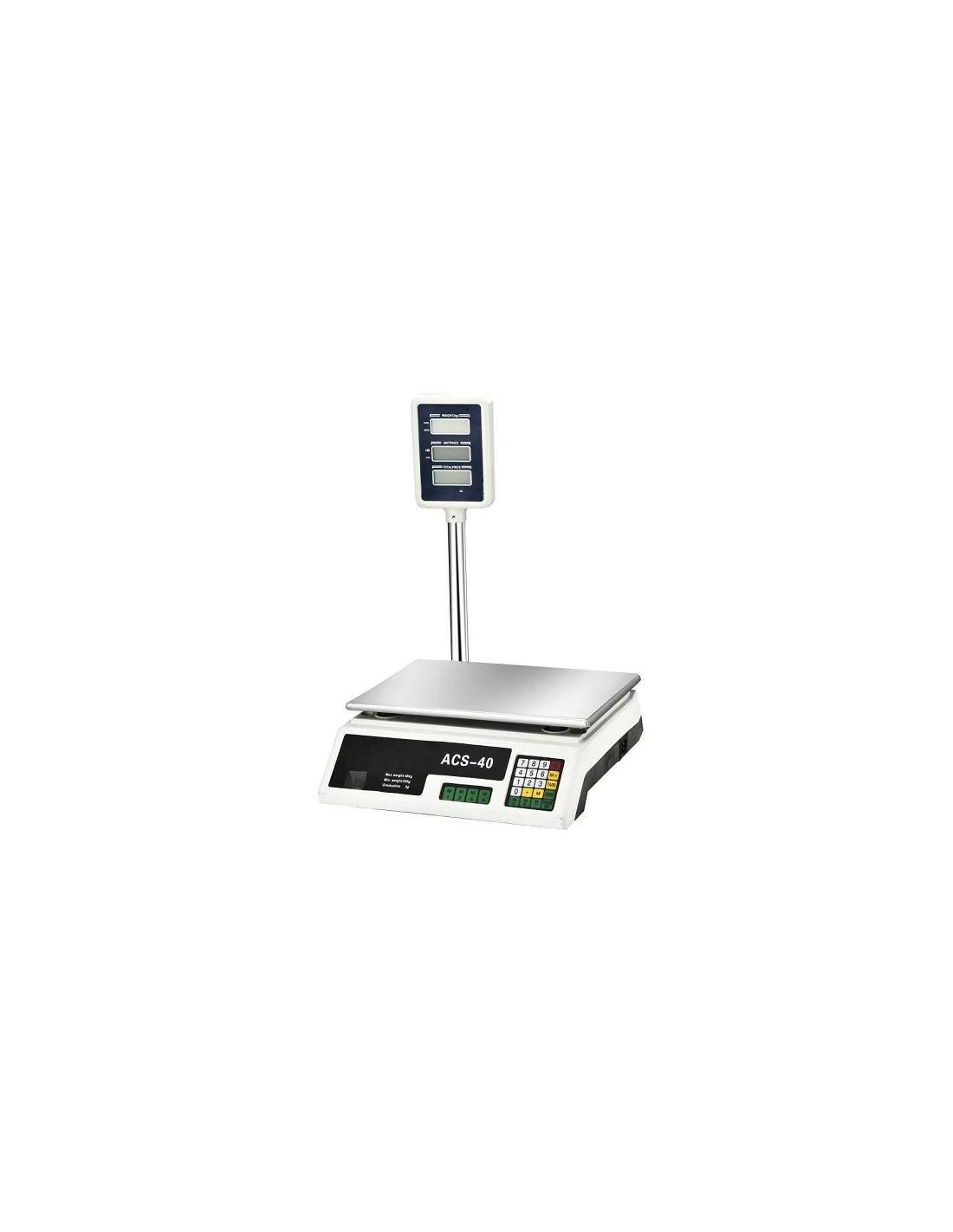 Ψηφιακή ζυγαριά λιανικής 40 κιλών διπλής οθόνης με υπολογισμό συνόλου αξίας.