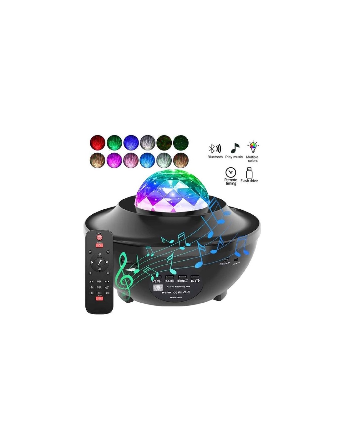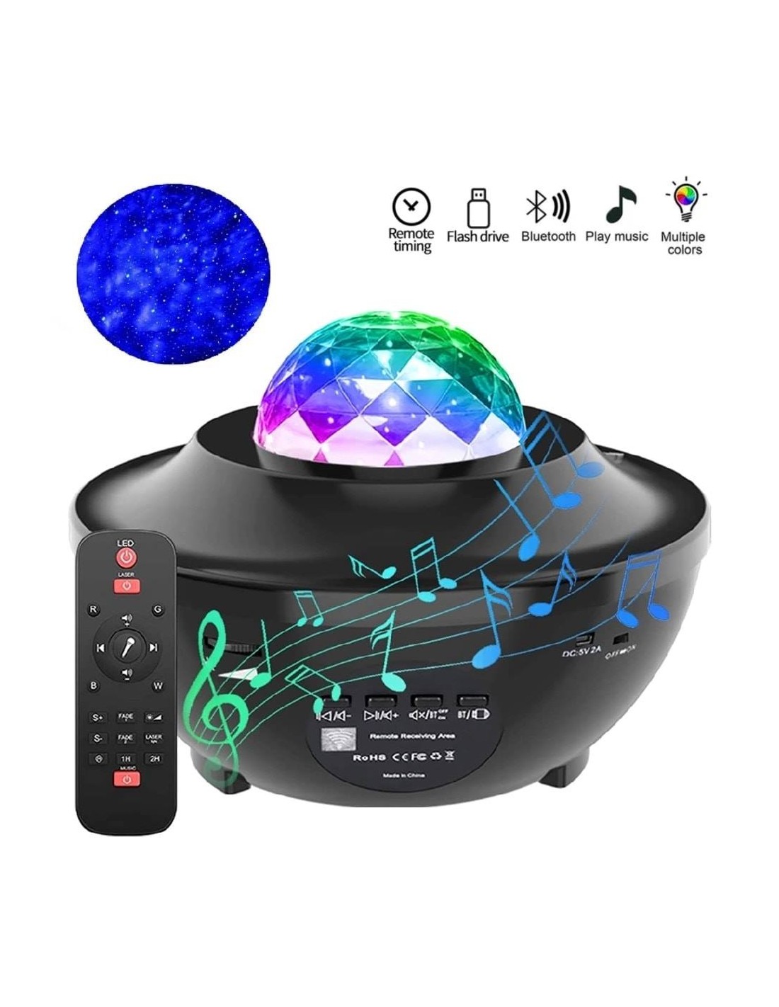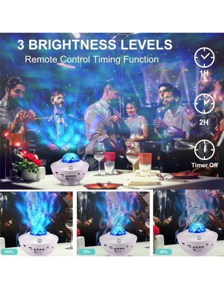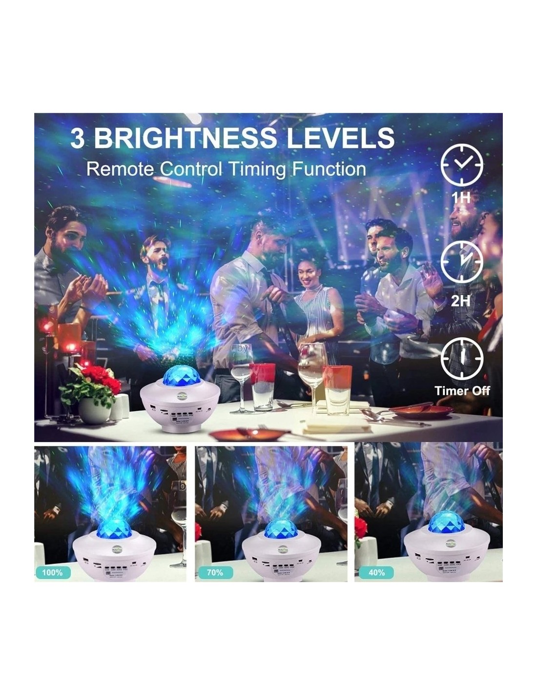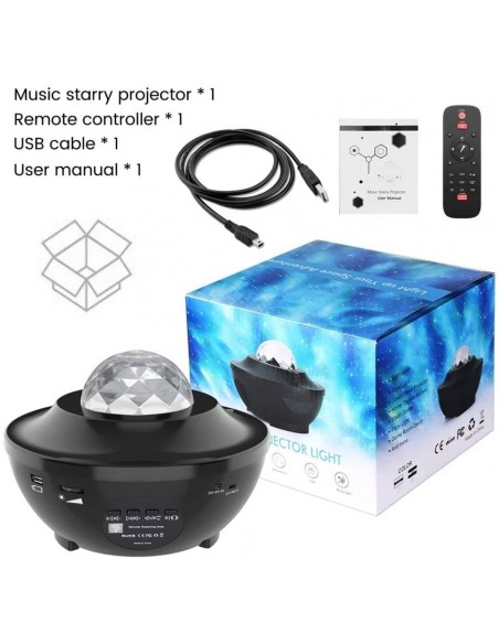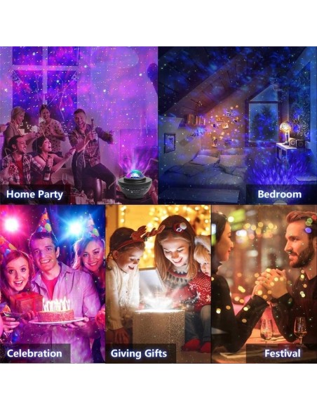Δεκάδες συνδυασμοί χρωμάτων και ποικιλία λειτουργιών. Σε κάνει να νιώθεις σαν να ξαπλώνεις στον ωκεανό, κάτω από τα αστέρια, αναπτύσσοντας την παιδική φαντασία. Το τηλεχειριστήριο μπορεί να ελέγξει την αναπαραγωγή μουσικής, τα χρώματα φόντου LED, Starry / Galaxy. Ρυθμίστε τη φωτεινότητα, την ταχύτητα αλλαγής, ενεργοποιήστε / απενεργοποιήστε ελεύθερα τη λάμπα ή τη μουσική. Η λειτουργία ενεργοποίησης ήχου επιτρέπει την προβολή ή την αλλαγή της προβολής ανάλογα με το ρυθμό της μουσικής.