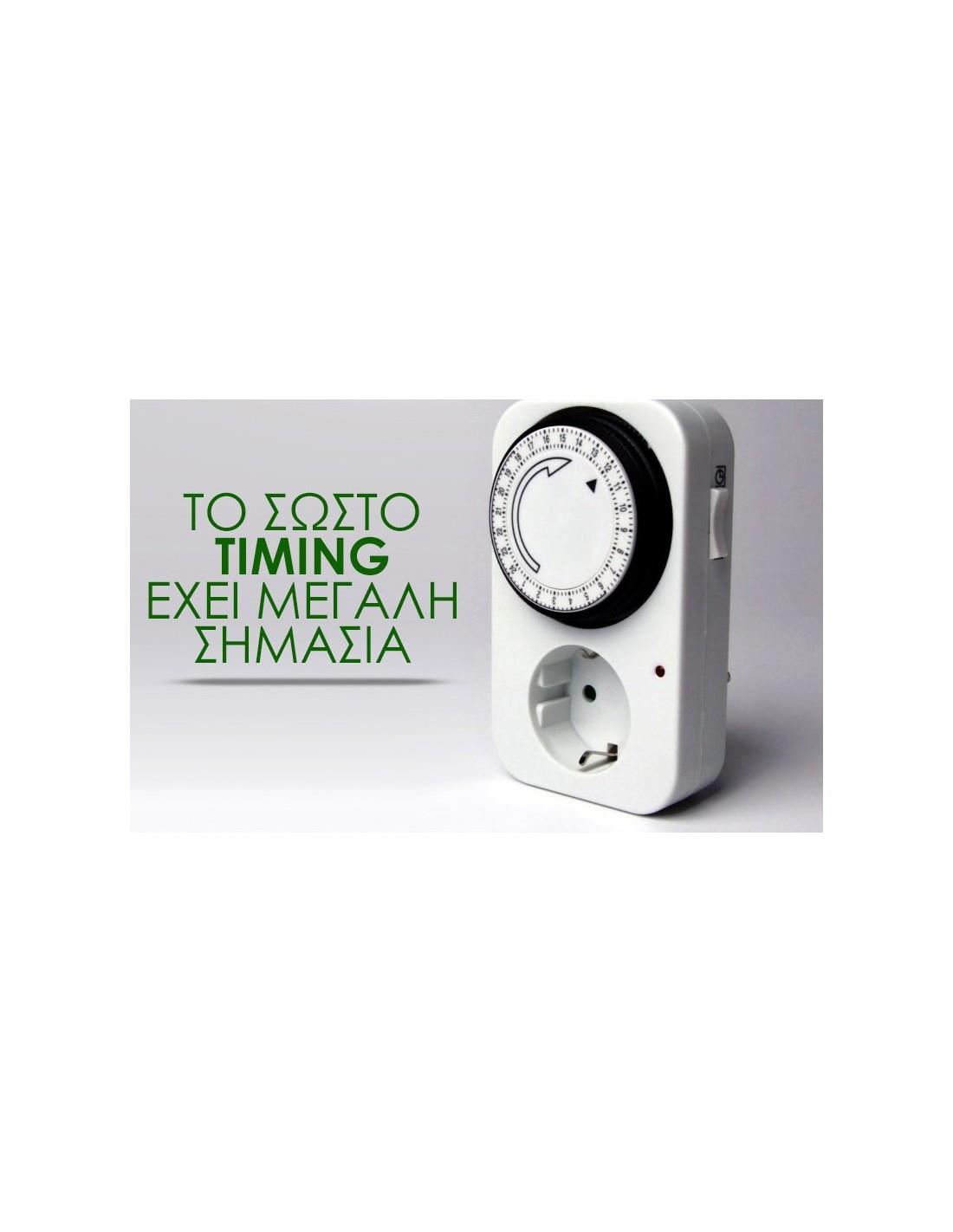 Ο χρονοδιακόπτης είναι 24ώρου και κάθε κουμπί στο πλάι παρέχει ρύθμιση ανά 15'. Έτσι μπορείτε να επιλέγετε ποια 15λεπτα κατά τη διάρκεια της ημέρας ή της νύχτας θέλετε η συσκευή που έχετε συνδέσει να λειτουργεί ή να είναι απενεργοποιημένη.