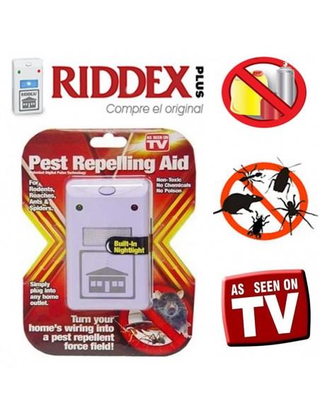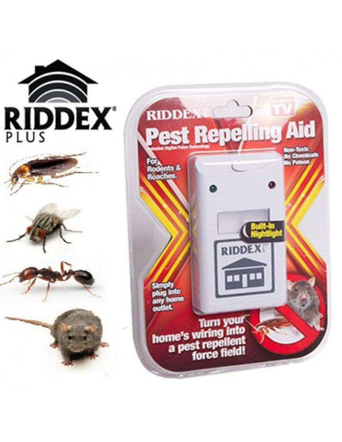 Το Riddex Plus είναι μια εκπληκτική συσκευή που θα κρατήσει μακριά από το σπίτι σας όλα τα τρωκτικά, τις κατσαρίδες αλλά και τα διάφορα έντομα βάζοντας το απλά σε μία πρίζα, χωρίς την χρήση χημικών και διάφορων επιβλαβών ουσιών.Συσκευή Απώθησης Τρωκτικών & Εντόμων RIDDEX Το Riddex είναι μια εκπληκτική συσκευή που θα κρατήσει μακριά από το σπίτι σας όλα τα τρωκτικά, τις κατσαρίδες αλλά και τα διάφορα έντομα βάζοντας το απλά σε μία πρίζα, χωρίς την χρήση χημικών και διάφορων επιβλαβών ουσιών.Τοποθετήστε την απλά στην πρίζα, σε έναν κεντρικό χώρο του σπιτιού σας. Πατώντας το Μπουτόν της συσκευής έχετε επιπρόσθετα ένα λαμπάκι νυκτός.