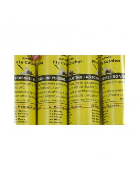 Πως λειτουργεί; Ξεδιπλώνετε την παγίδα, τραβώντας το λουράκι, και από μέσα θα βγει μία ταινία κόλλας την οποία κρεμάτε όπου θέλετε. Οι μύγες θα πάνε στην παγίδα και θα κολλήσουν πάνω της. Μόλις έχουν κολλήσει όλες οι μύγες, ξεκρεμάτε την παγίδα και την πετάτε!