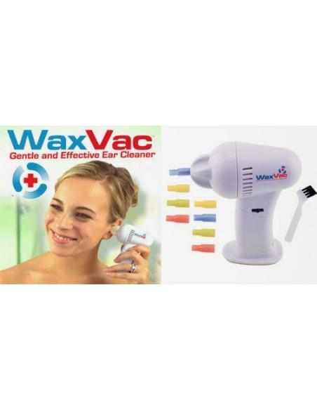 Πείτε αντίο στις μπατονέτες το Wax Vac είναι ο πλέον ασφαλής τρόπος για τον καθαρισμό των αυτιών σας, αλλα και των παιδιών. Ενα εργαλείο απαραίτητο για κάθε οικογένεια. Η πρωτοποριακή κατασκευή του, μηδενίζει τις πιθανότητες τραυματισμού σε αντίθεση με τις κοινές μπατονέτες. Περιέχει 4 κεφαλές καθαρισμου απο σιλικόνη που προστατεύουν το εσωτερικό του αυτιού. Διαθετει πρωτοποριακό φωτάκι Led στο πίσω μέρος για καλύτερη οπτική επαφή. Λειτουργεί με 2 μπαταρίες ΑΑ - ΔΕΝ ΠΕΡΙΕΧΟΝΤΑΙ (τοποθέτηση εναλλαξ)