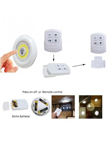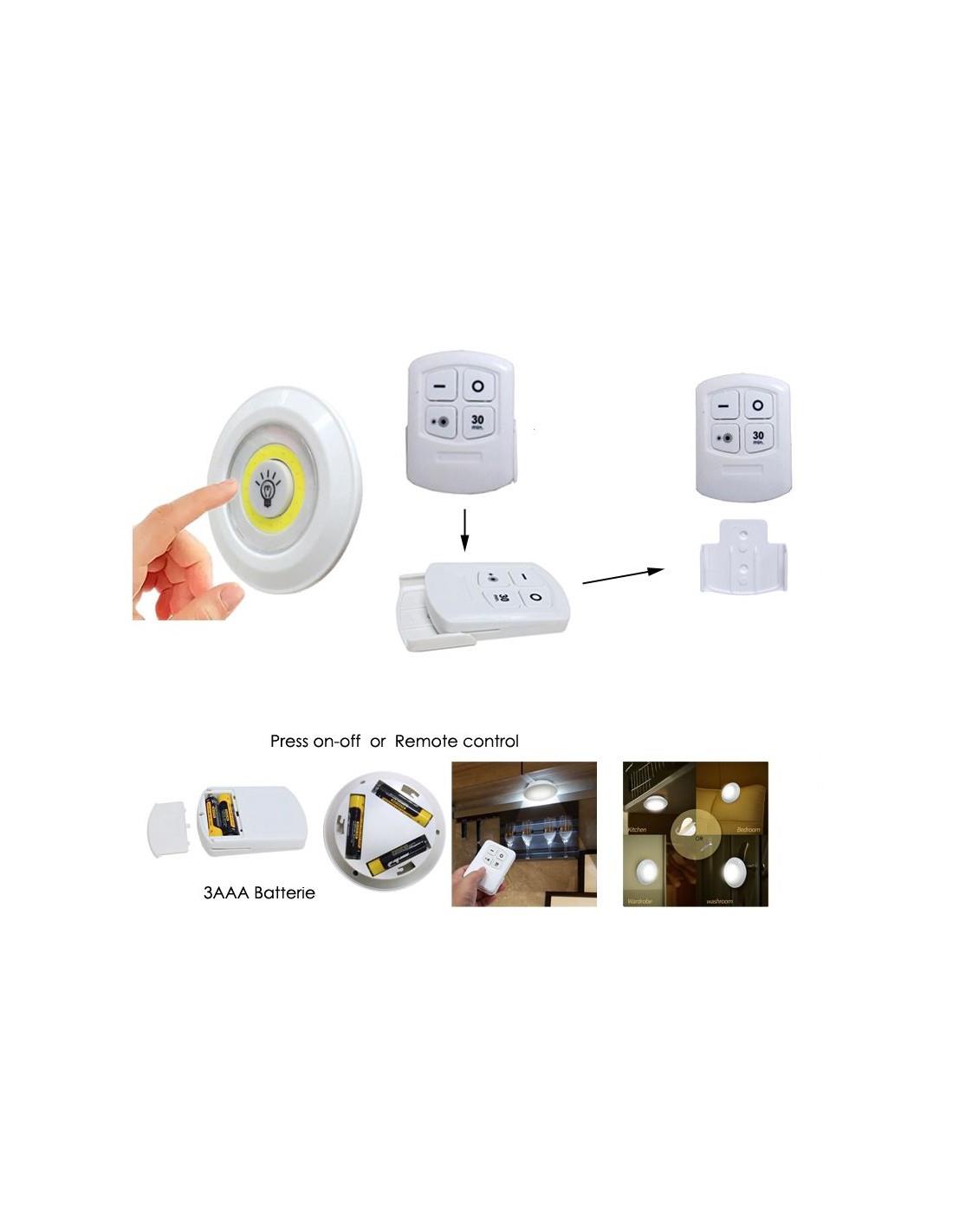 Σετ με 3 φωτιστικά με τηλεχειριστήριο και χρονοδιακόπτη 30 λεπτών. Με τεχνολογία COB LED και μέγιστη φωτεινότητα 140 lumens για το κάθε φωτιστικό. Στερεώνονται με αυτοκόλλητο διπλής όψης (συμπεριλαμβάνονται) ή στον τοίχο.