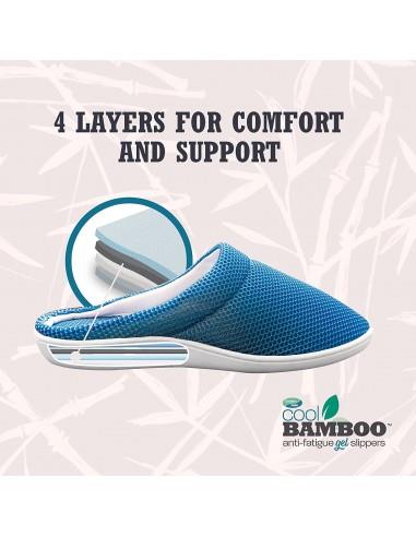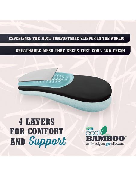 Το Cool Bamboo Anti-Fatigue Gel Παντόφλες είναι κατασκευασμένα από ένα αναπνεύσιμο πλέγμα ώστε τα πόδια σας να παραμείνουν δροσερά και άνετα κατά τη διάρκεια των θερμότερων εποχών.