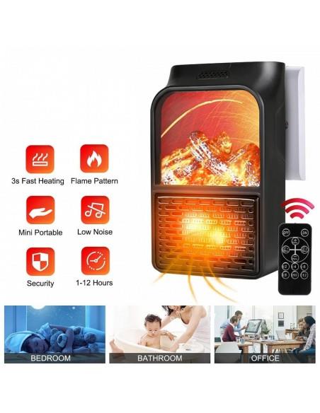 Mini Αερόθερμο-Σόμπα Πρίζας με Διακοσμητικό Τζάκι 3D Εφέ Φλόγας με Τηλεχειριστήριο
