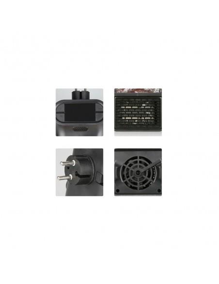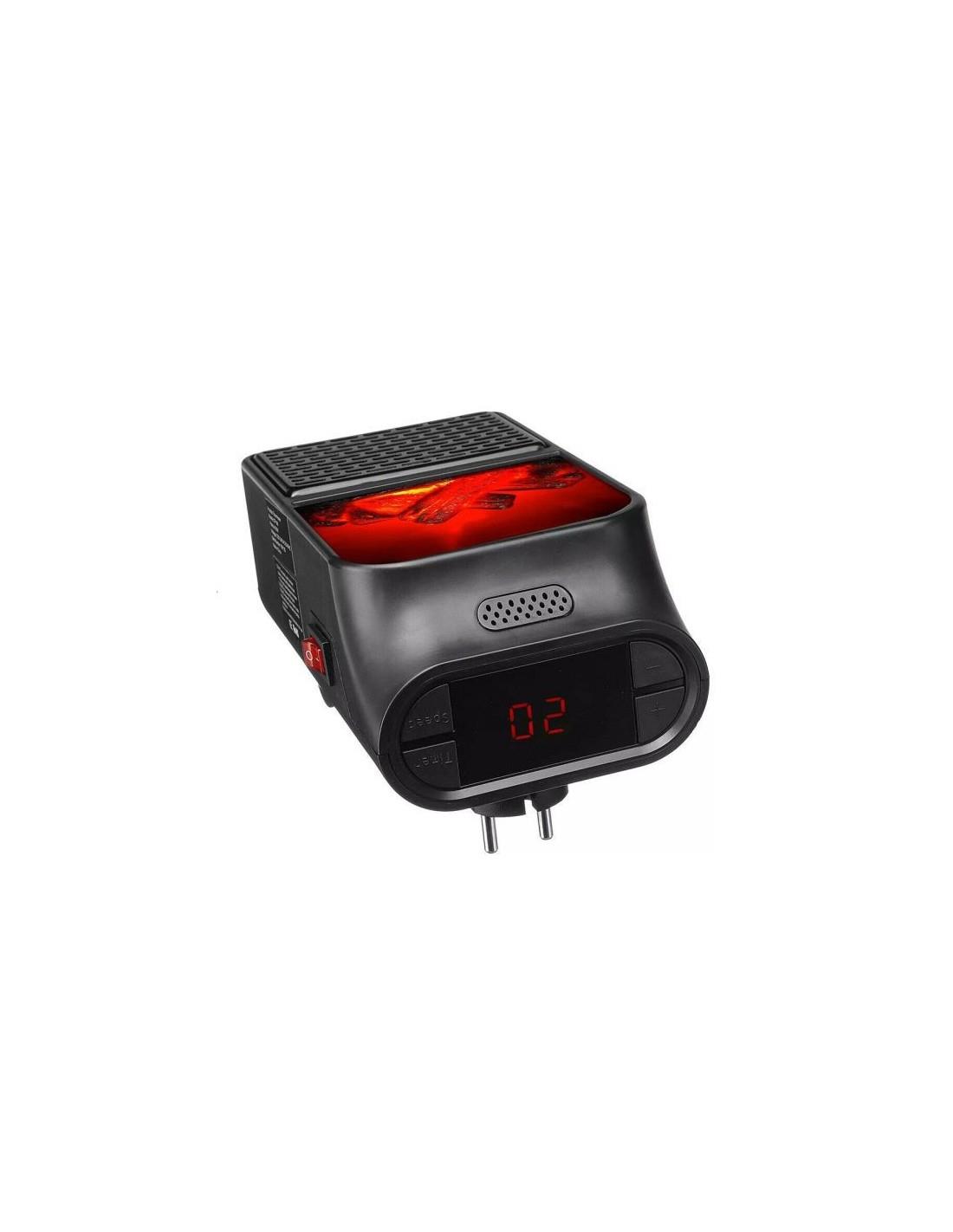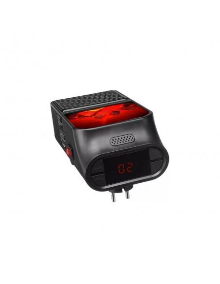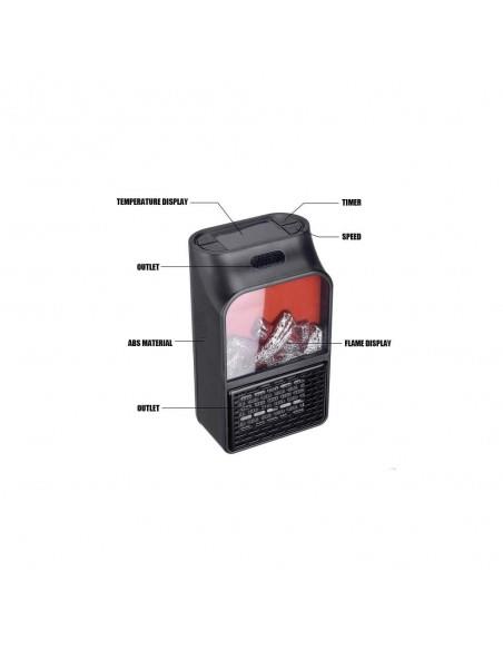 Η μίνι σόμπα πρίζας Flame Heater διαθέτει οθόνη – ψηφιακό θερμοστάτη για να ρυθμίζετε την επιθυμητή θερμοκρασία αλλά και ανεμιστήρα 2 ταχυτήτων για να μεταδίδει την ζέστη σε όλο τον χώρο.