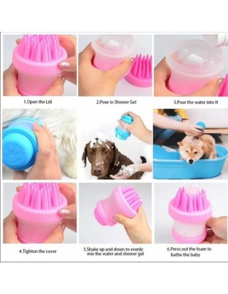 Η βούρτσα αυτή είναι ειδικά σχεδιασμένη για να γεμίζετε το κύπελο με σαμπουάν και νερό, και ενώ βουρτσίζετε το σκυλάκι σας, το νερό βγαίνει από την τρύπα που έχει στο κέντρο του με αποτέλεσμα να δημιουργείται αφρός!
