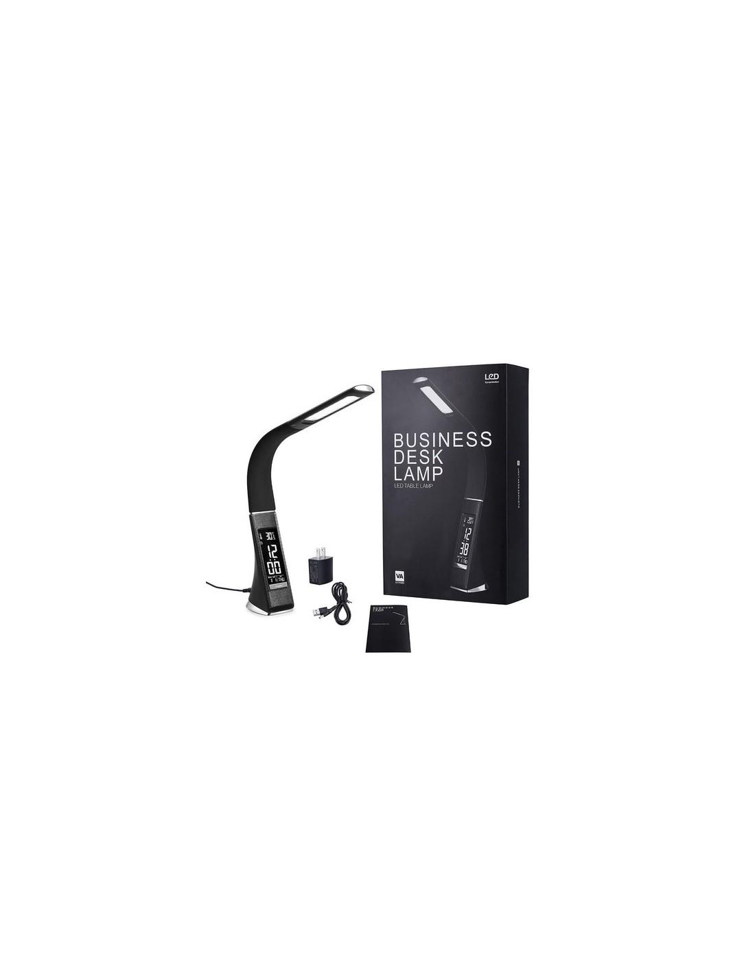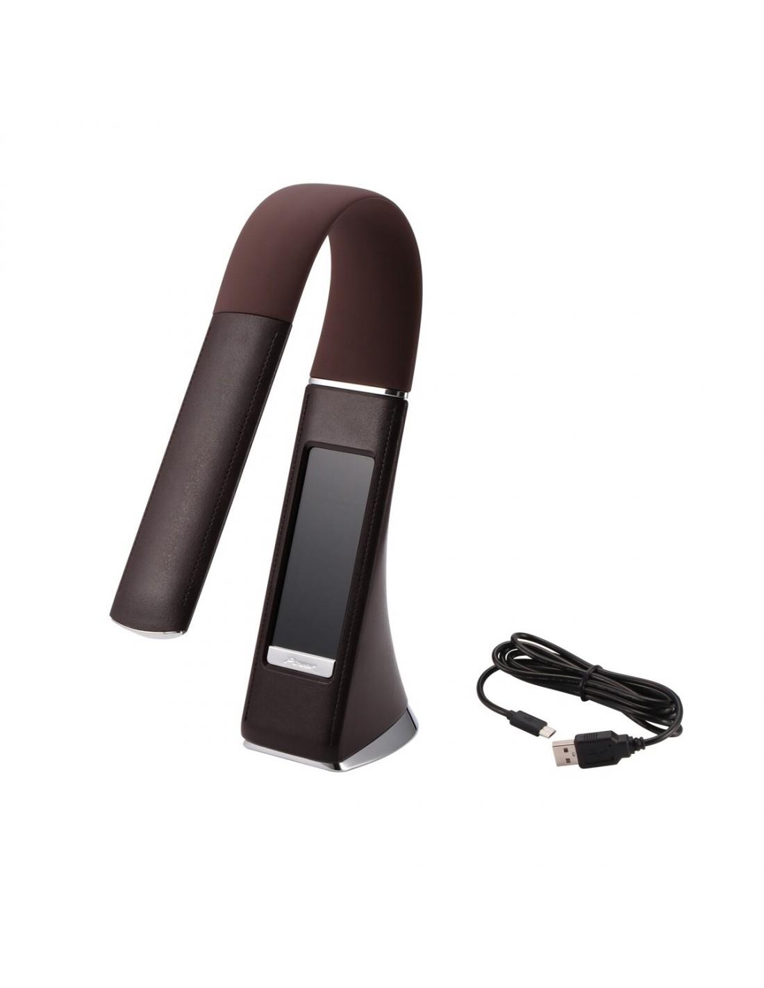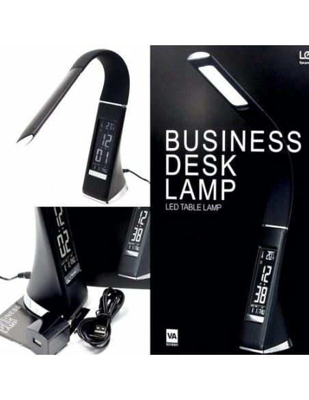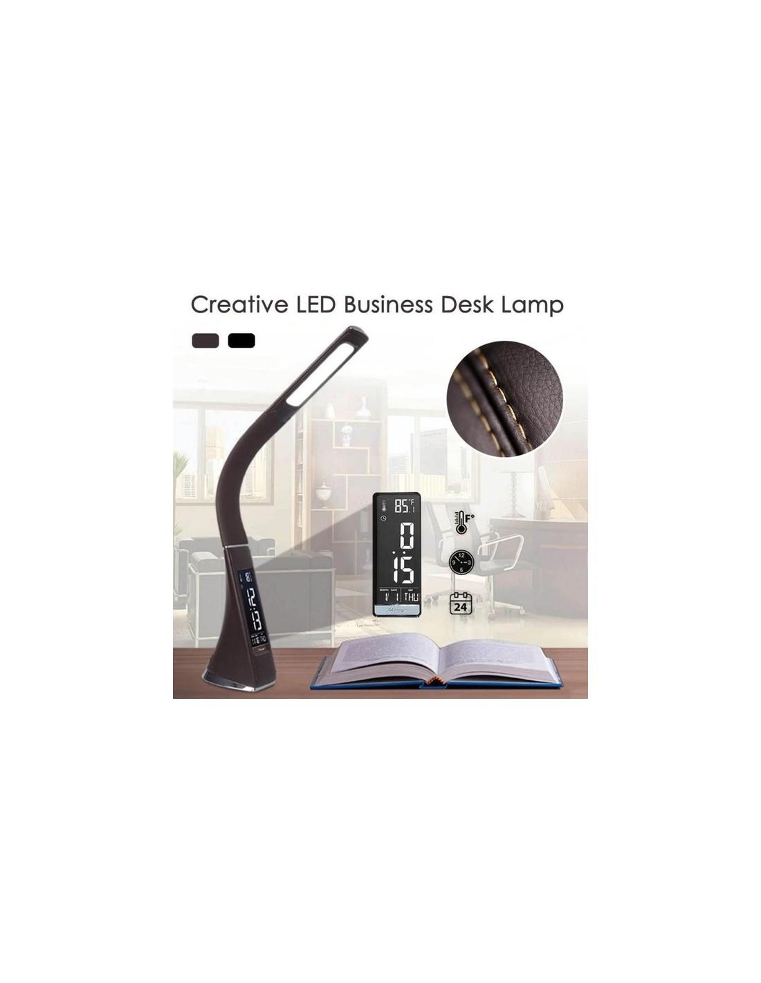Υψηλής ποιότητας λάμπα γραφείου LED με μοντέρνο σχεδιασμό, ρολόι και θερμόμετρο. Έχει τη δυνατότητα να ρυθμίσετε την ένταση του φωτισμού. Η λάμπα δεν έχει σχεδιαστεί για φωτισμό ανάδειξης.