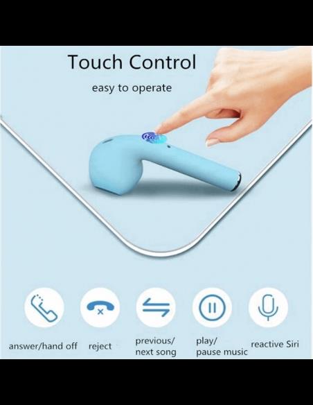 Πανέμορφα χρωματιστά ακουστικά αφής σε μπλε χρώμα, bluetooth 5.0, τύπου iPhone με αυτοματοποιημένη σύνδεση με pop-up window στο κινητό. Σε αντίθεση με φθηνές απομιμήσεις που διαθέτουν κουμπί πάνω στο ακουστικό, αυτό το μοντέλο είναι αφής για εξαιρετική κομψότητα.