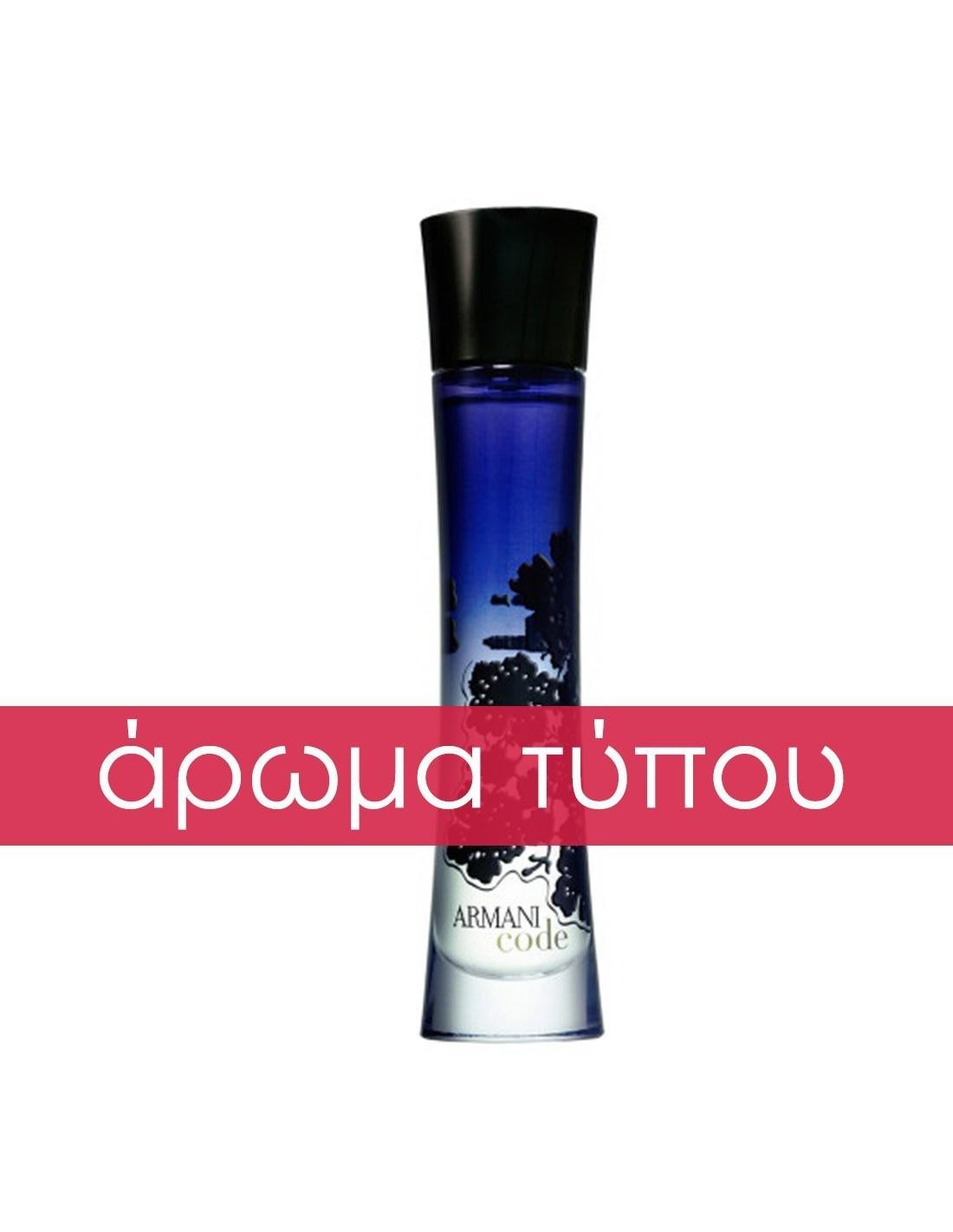 Απλό αλλά και αισθησιακό, ηρεμεί ενώ σαγηνεύει. Ένα μαγευτικό άρωμα, τόσο κομψό, όσο και η παρουσία ενός φορέματος Armani στο κόκκινο χαλί. Το Armani Code είναι γυναικείο άρωμα του οίκου Armani. Αποπλανεί τις αισθήσεις με μια ενδιαφέρουσα συμφωνία ανθών πορτοκαλιάς, νότες από φρέσκο ginger και ένα χάδι από την συμφωνία μελιού-σανδαλόξυλου και δημιουργεί μια αξέχαστη και μαγευτική νέα συνάντηση. Ο μυστηριώδης κώδικας αποπλάνησης μιας γυναίκας, έχει πια αποκαλυφθεί.